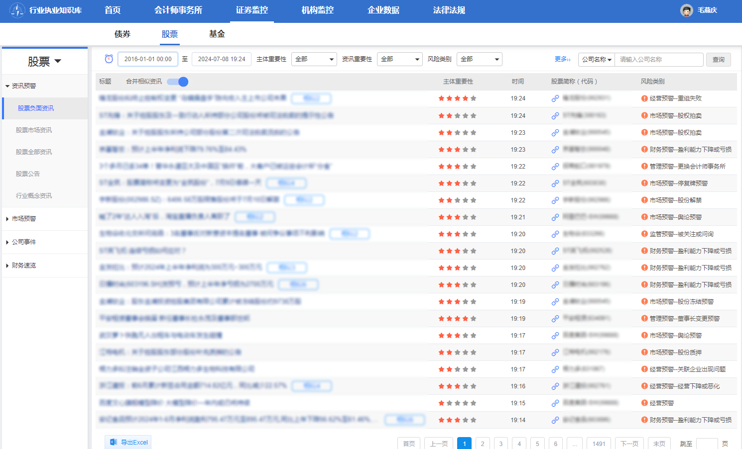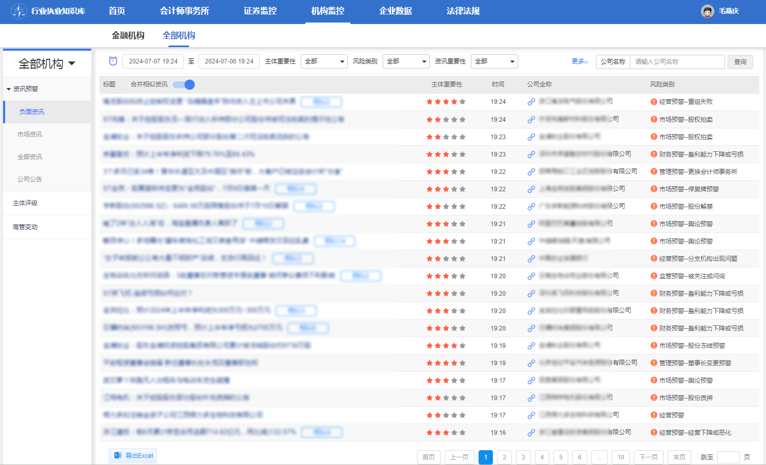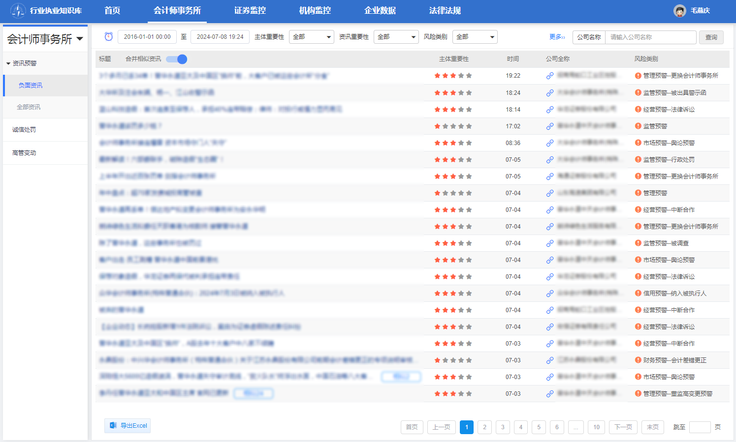 行业执业知识库通过汇集国内外主流媒体公开信息,建立会计师事务所和被审计企业工商变更、舆情事件、处罚信息、财务等多重关联信息,并提供企业库和法律法规库,通过大数据分析监测,有助于辅助性预警和风险识别。